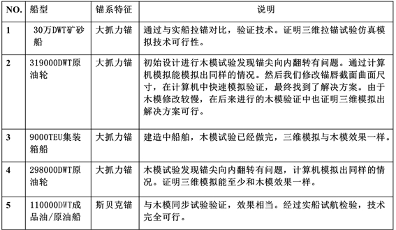 (1)節(jié)約設計與試驗時間,具備快速設計、快速修改和驗證能力:以前國內(nèi)船廠做法是根據(jù)錨系基本型、采用經(jīng)驗類比法進行設計,然后對設計通過木模進行試驗,發(fā)現(xiàn)問題進行修改。這個過程存在設計周期長,特別是修改的時候,耗費大量時間。我們采用現(xiàn)在技術,拉錨試驗通過計算機模擬技術節(jié)約了大量的成本、減少了拉錨試驗時間。